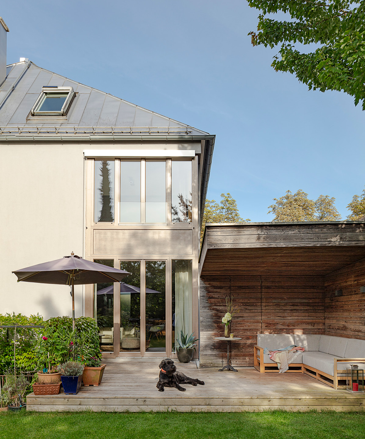 Mit dem Freisitz als zentralem Element der Außenanlagen wird die besondere Atmosphäre und Wohnqualität des Innenraums konsequent nach draußen verlängert und erlebbar gemacht.